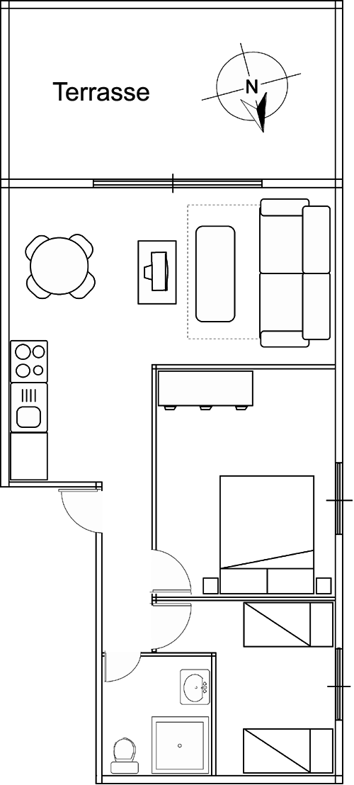 - 1x kitchen with dining area